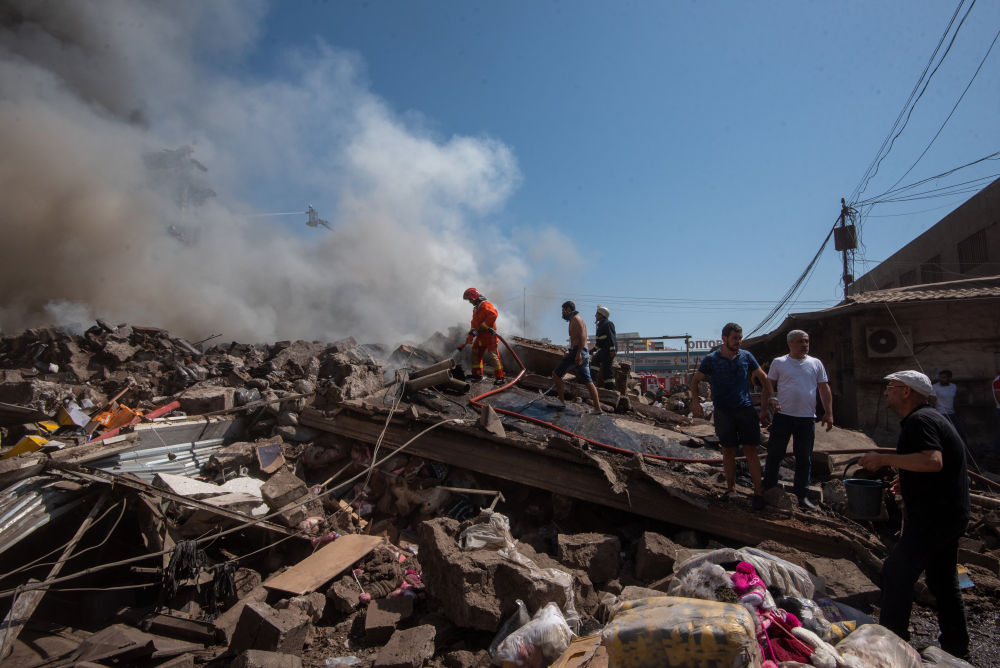 8月14日,救援人员在亚美尼亚首都埃里温的购物中心爆炸现场工作。新华社发(阿萨塔·耶塞恩茨摄)