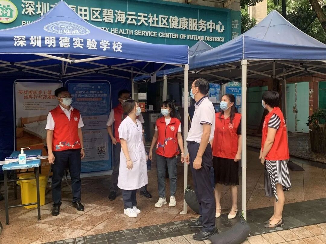 会议结束后,孙福金一行人来到碧海云天社康进行实地考察,就会上提出的问题与社康主任进行深刻交谈,了解具体情况并做好记录。接着开展志愿服务活动。在云天路、云浩路发放口罩,摆放单车等,孙福金发挥带头作用,积极在路口巡查,针对居民不戴口罩的行为进行及时劝阻并发放口罩;孙福金带领部门成员争做环保卫士,针对路面掉落的垃圾及时清理,维持路面的干净整洁,为深圳创建文明城市奉献力量。