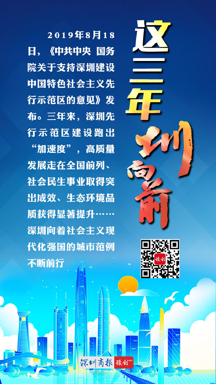 今天是深圳建设中国特色社会主义先行示范区三周年。这三年,圳向前!