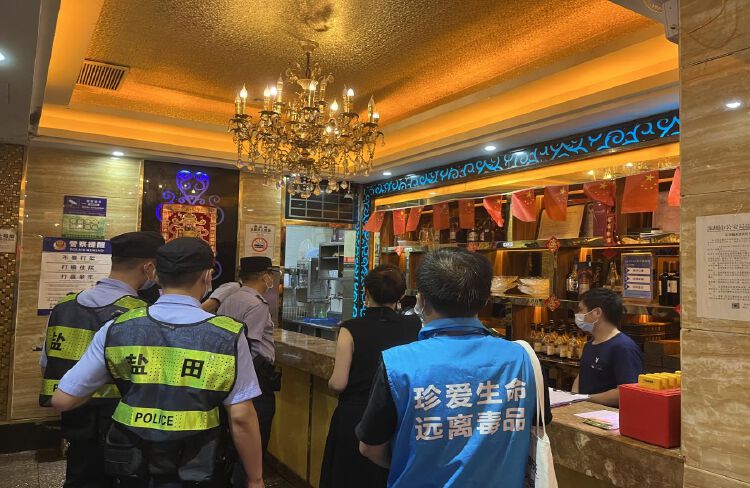 8月15日晚,盐田区沙头角街道办联合沙头角派出所前往辖区宾馆、KTV等场所开展涉毒排查及禁毒宣传夜查行动,旨在进一步加大禁毒教育宣传的力度,提高辖区宾馆、KTV等经营服务场所从业人员对毒品的认知及抵御能力,防范涉毒违法犯罪行为发生。