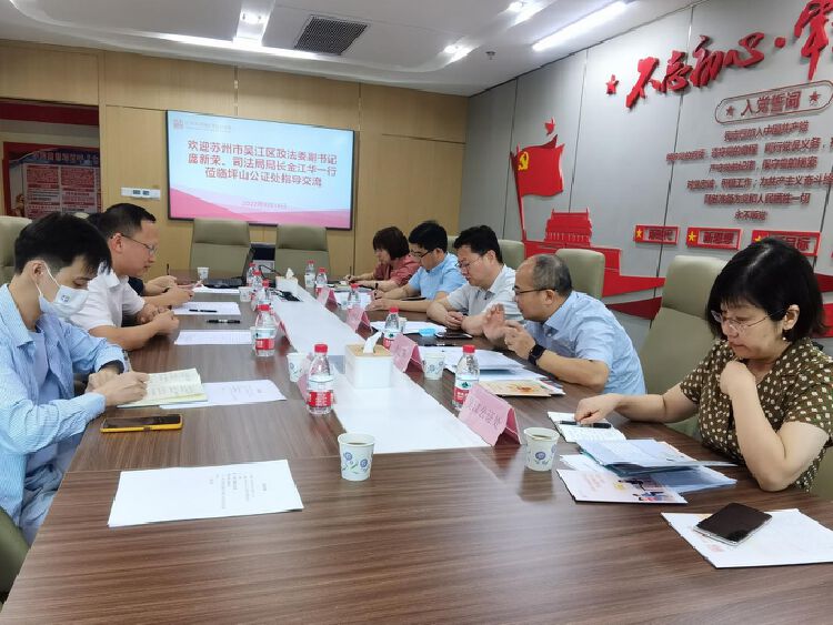 8月18日下午,苏州市吴江区政法委副书记庞新荣、司法局局长金江华等一行5人到深圳市坪山公证处指导交流工作。