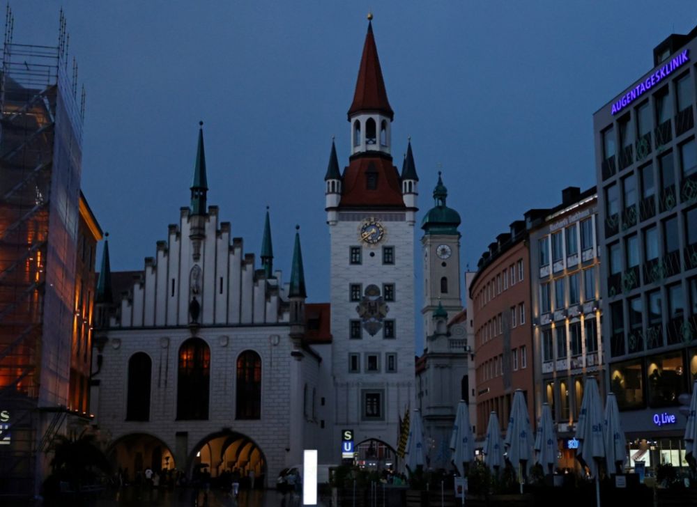 这是7月30日晚拍摄的德国慕尼黑老市政厅。为应对能源紧张,德国多地采取措施节约用电。新华社发(菲利普·鲁伊兹摄)
