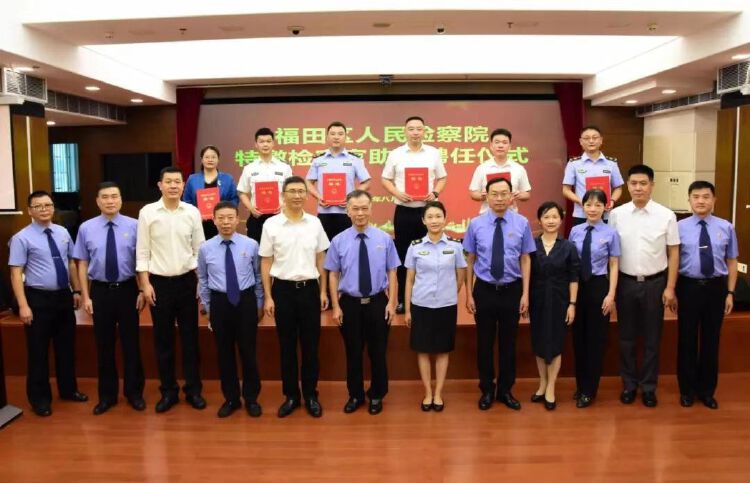 近日,深圳市福田检察院举行特邀检察官助理聘任仪式,来自深圳市公共交通管理局、深圳市生态环境局福田管理局、深圳市市场监督管理局福田监管局、福田区司法局、福田区人力资源局以及福田区妇女联合会等6家单位的8名业务骨干获聘为福田检察院特邀检察官助理。未来2年,他们将在专业领域案件中履职发力,直接助力福田检察高质量发展。