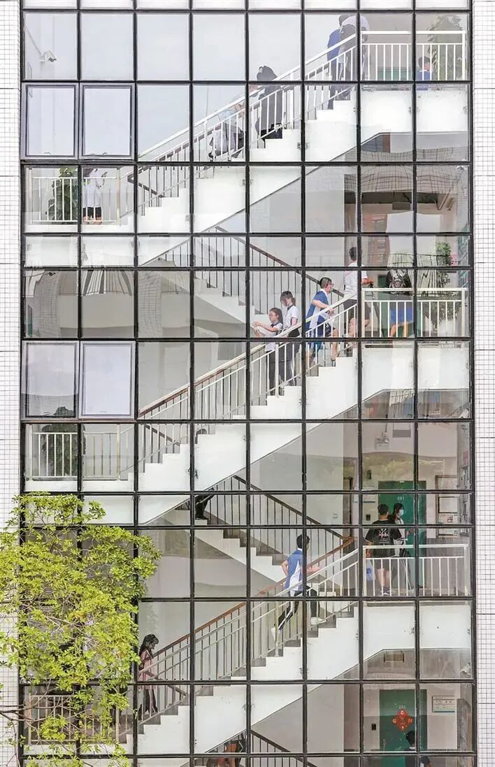 2022年6月6日,宝安中学(集团)高中部高考考点,考生有序前来踩点。