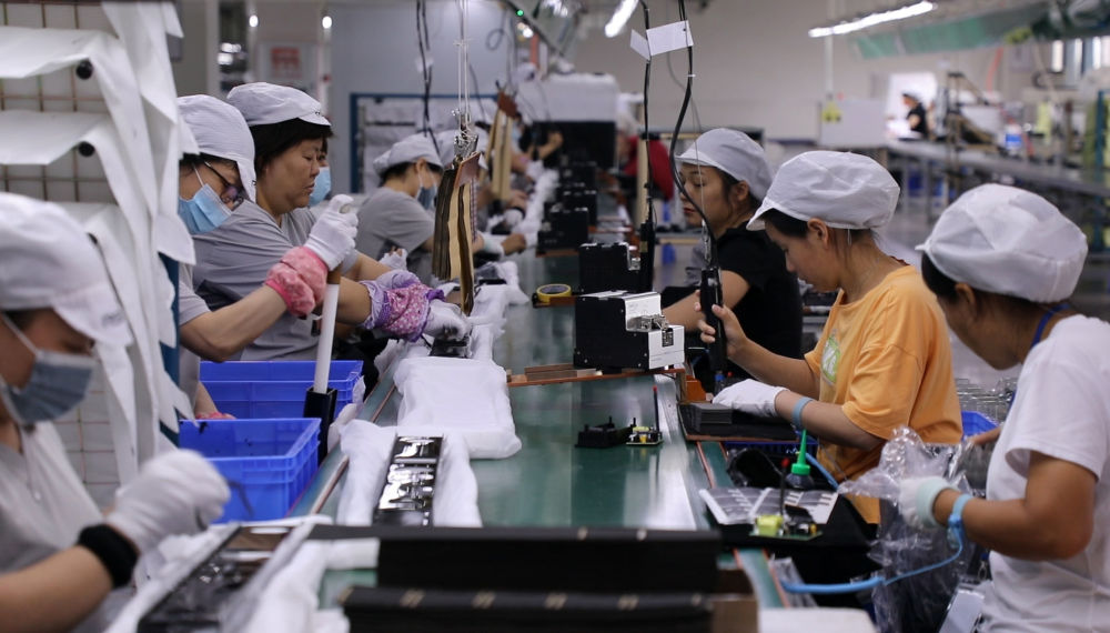 悦辰电子“妈妈车间”的女工在工作。新华社记者 黄国保 摄