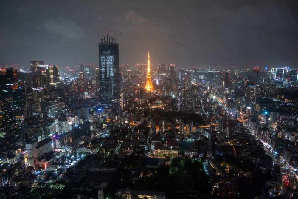 3月26日,日本东京塔在“地球一小时”活动前亮灯。新华社记者张笑宇摄
