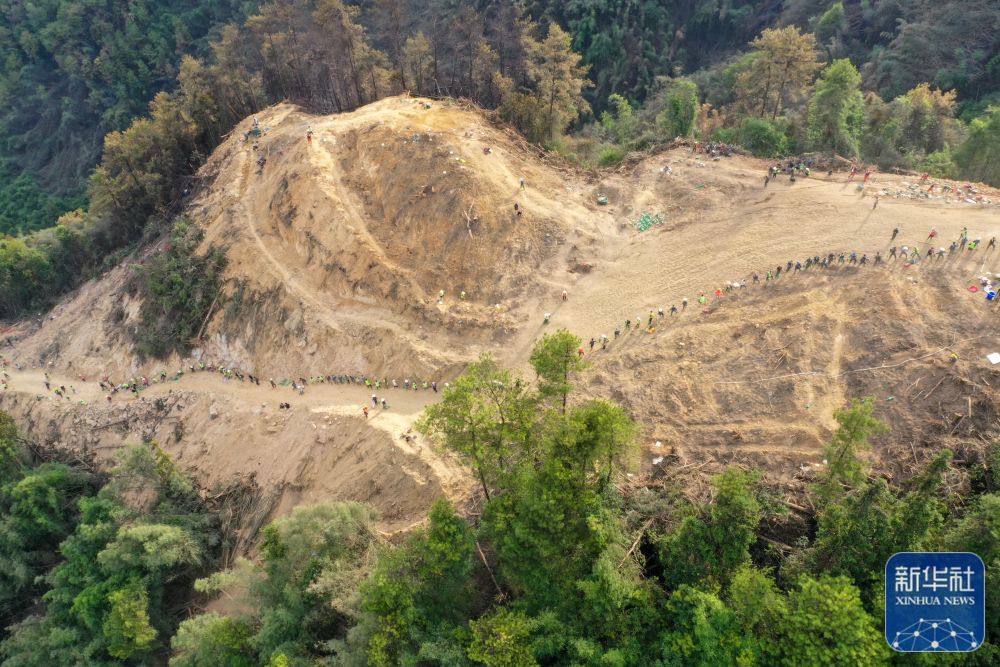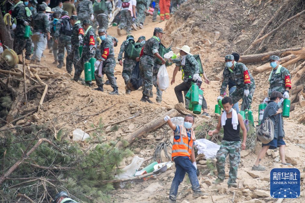 8月26日凌晨,志愿者队伍向山顶运送物资。