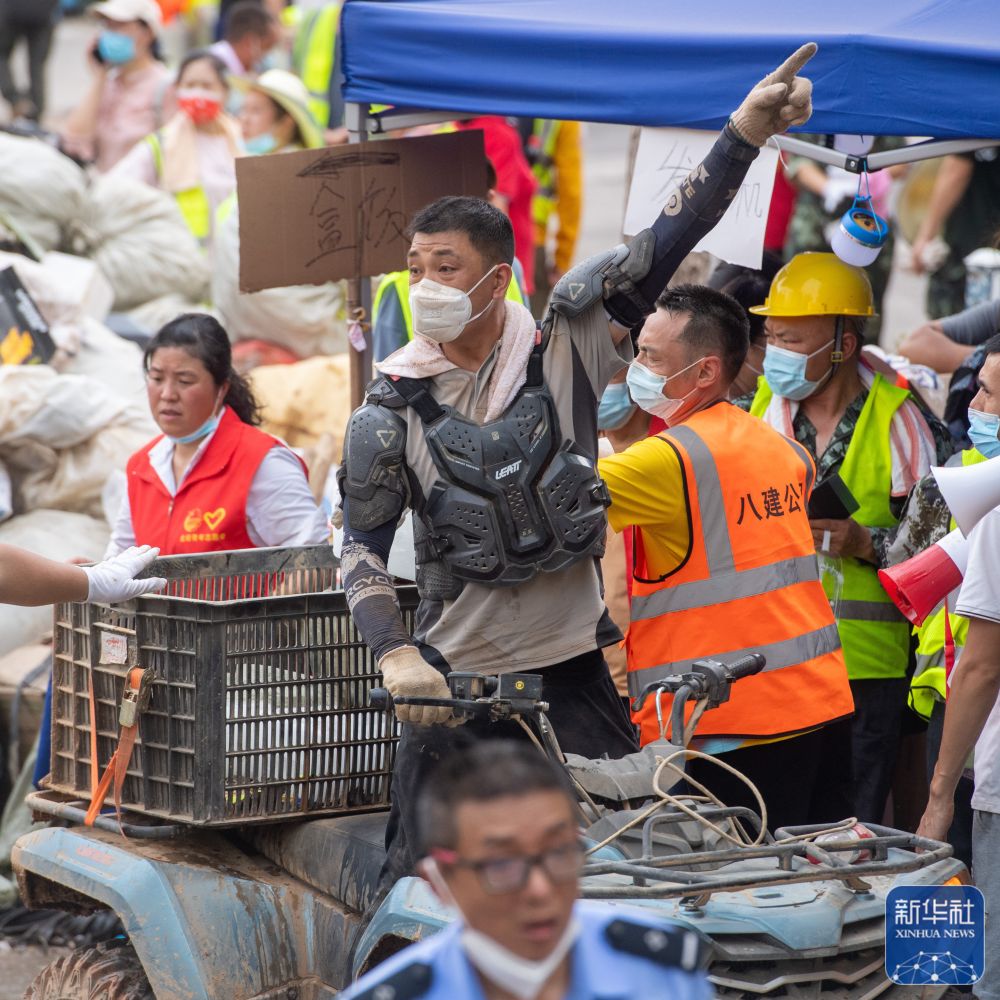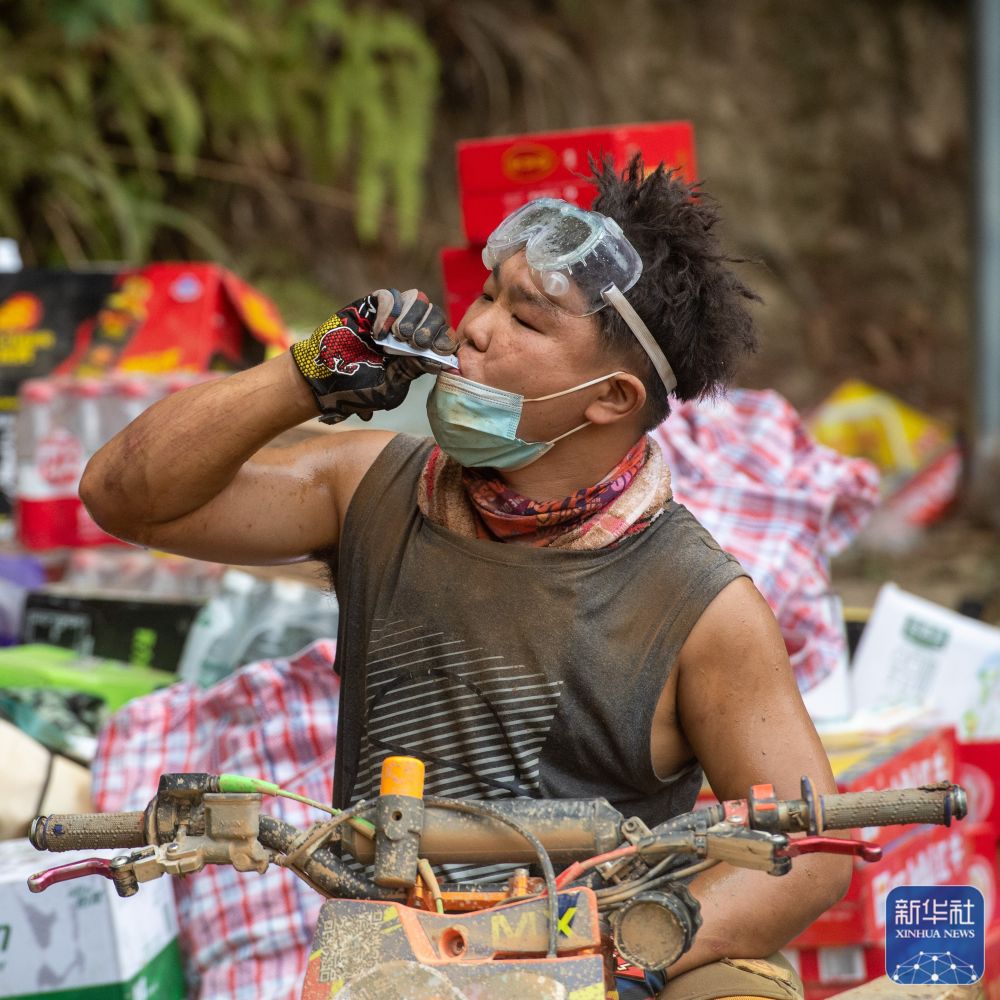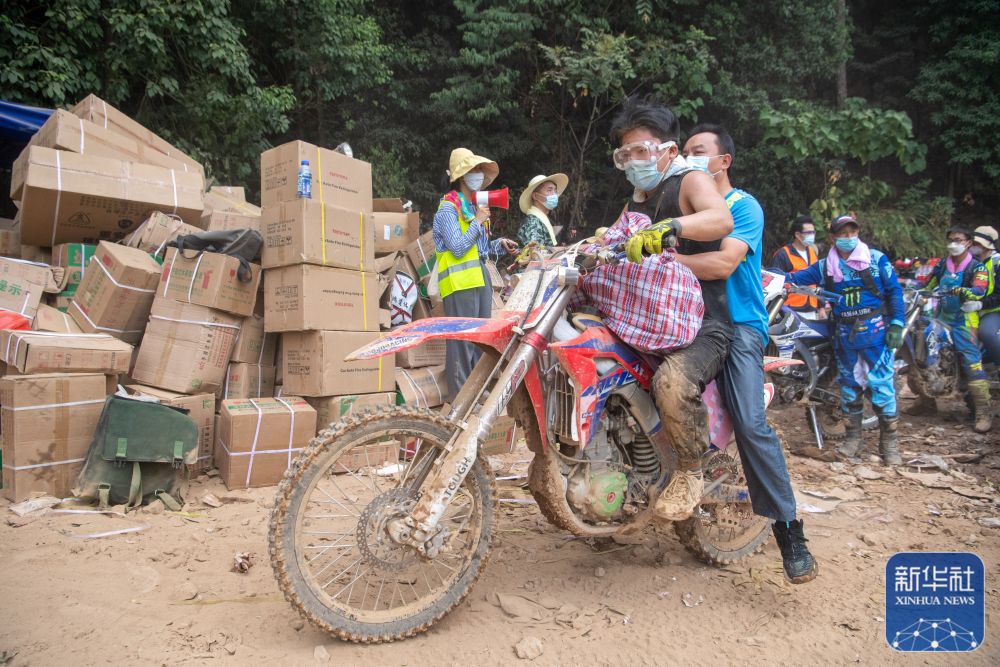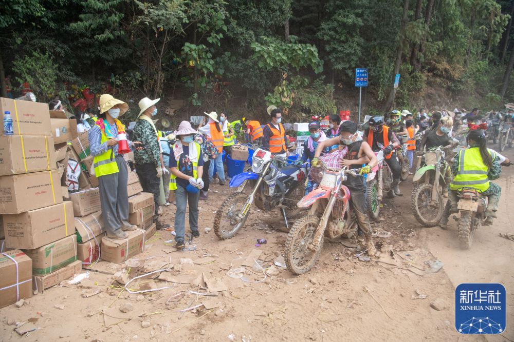 8月26日凌晨,“摩托大军”志愿者运送救援物资。