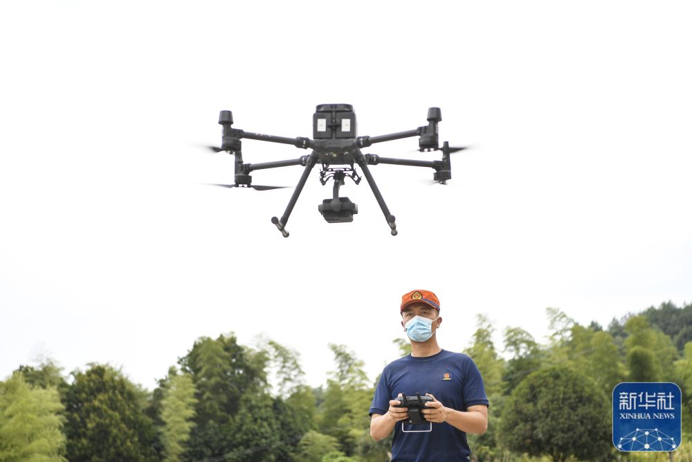 8月26日,消防人员准备利用无人机巡查北碚区与璧山区交界一带山林情况。
