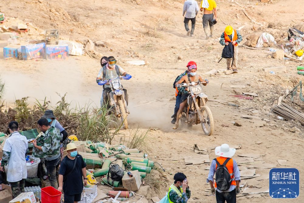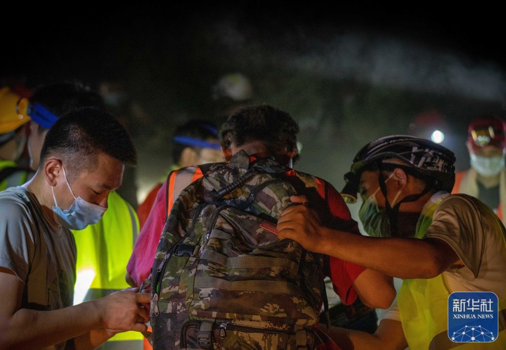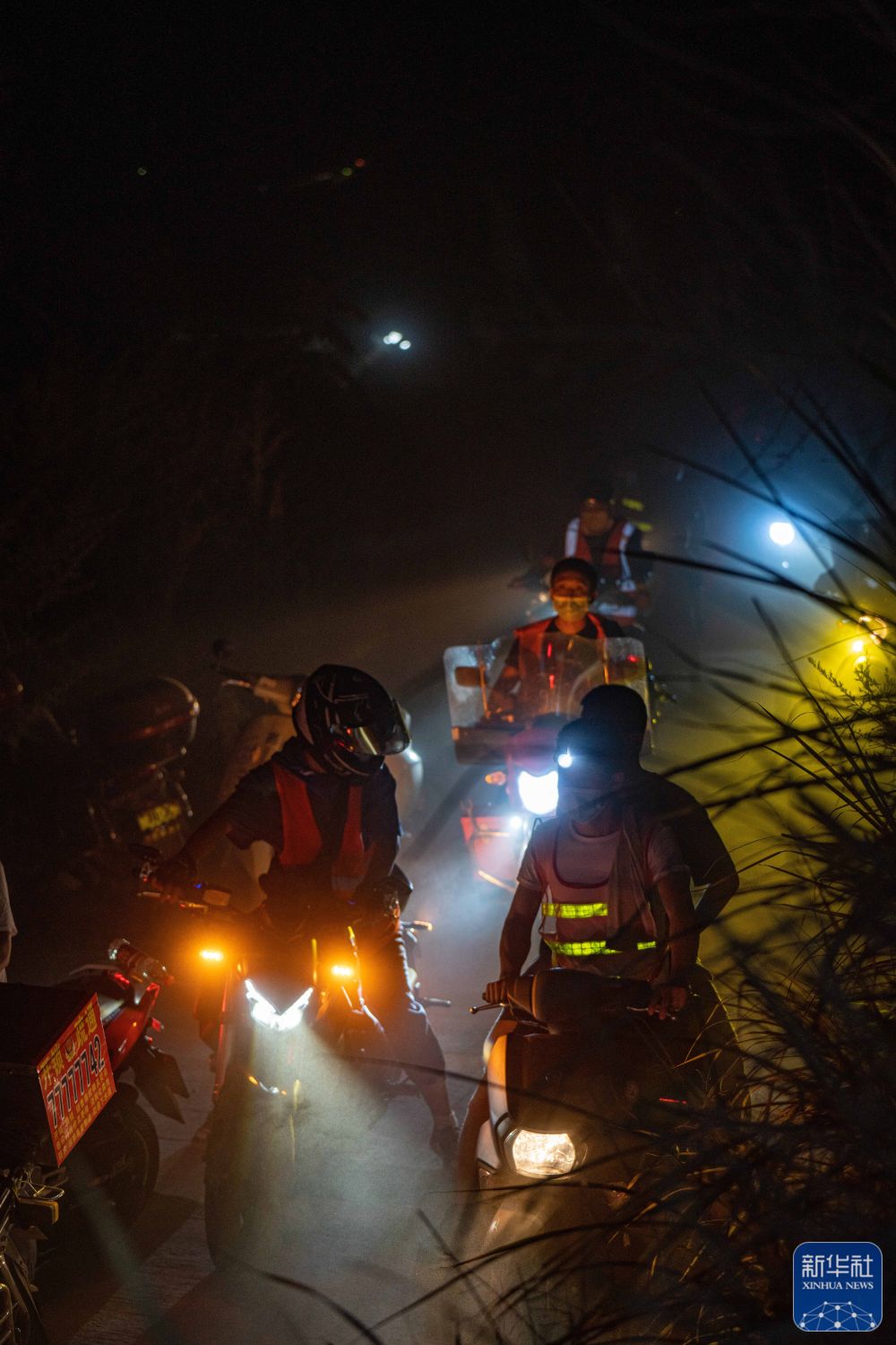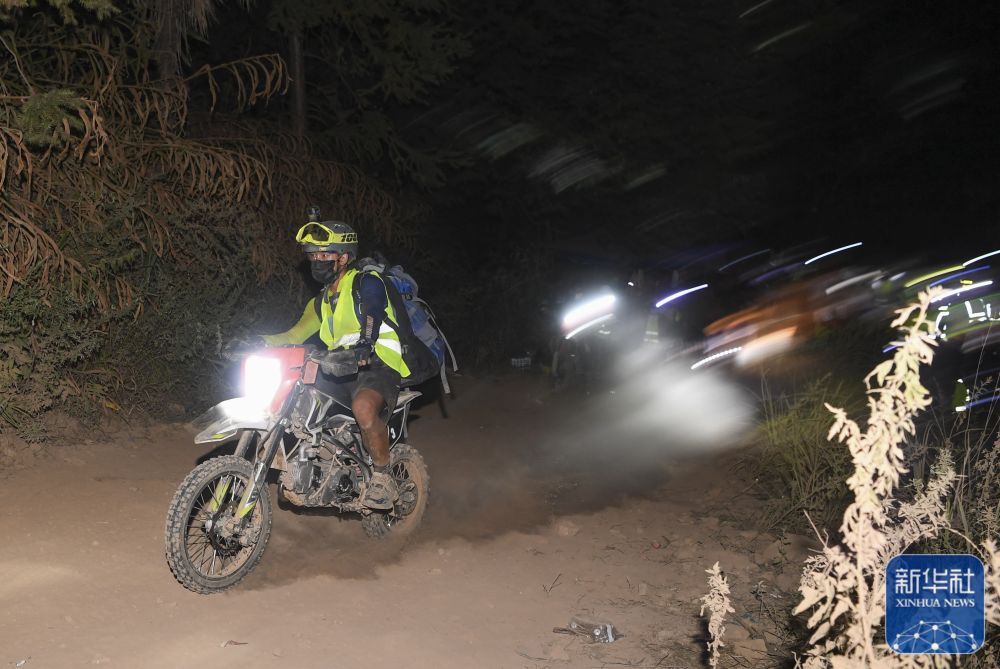 8月26日凌晨,“摩托大军”志愿者向山顶运送人员与物资。