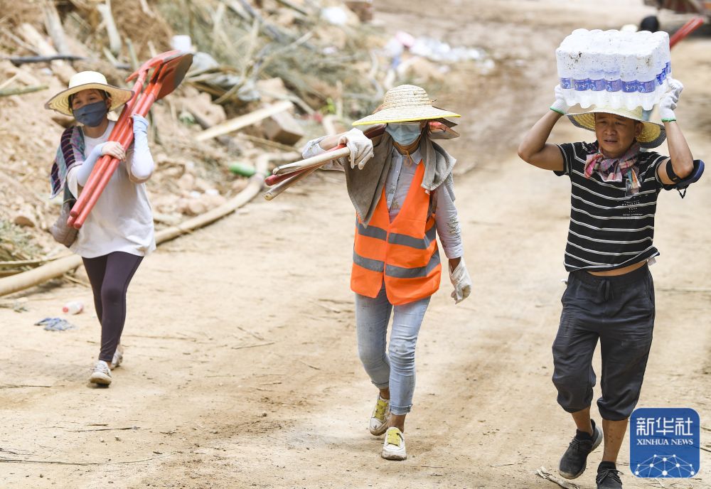 8月26日,志愿者搬运救援物资。
