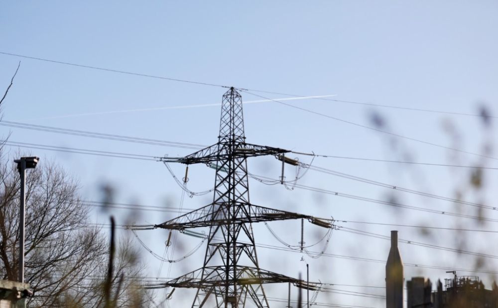 这是1月17日在英国赫特福德郡霍兹登拍摄的发电站附近的输电线路。新华社记者李颖摄