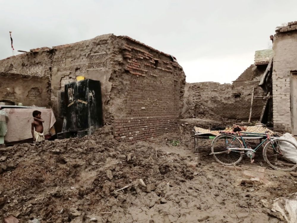 这是8月22日在巴基斯坦信德省特达地区拍摄的在强降雨中损毁的房屋。新华社发