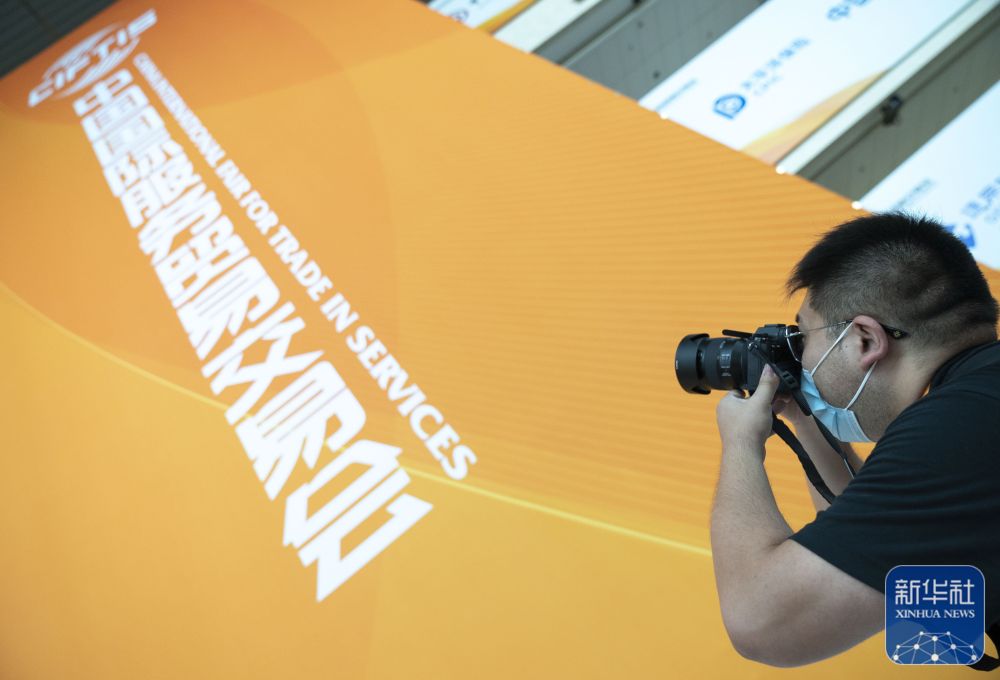 8月28日,在国家会议中心,记者在服贸会媒体探营活动中拍摄照片。