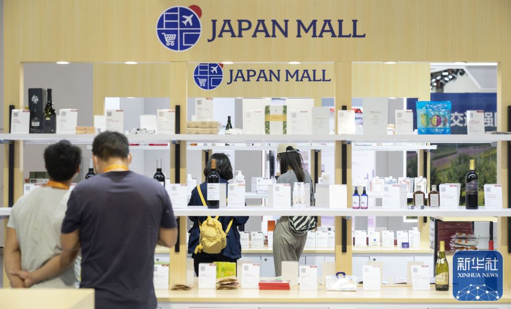 8月28日,在国家会议中心举行的服贸会媒体探营活动中,人们在日本展台观看展品。