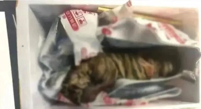 郝某按照陈某指示,在某街道路口将包好的小老虎尸体及填好的快递单交给快递员,邮寄至西安市某小区,结果阴差阳错寄给了刘某,这才有了刘某报警的这一出。