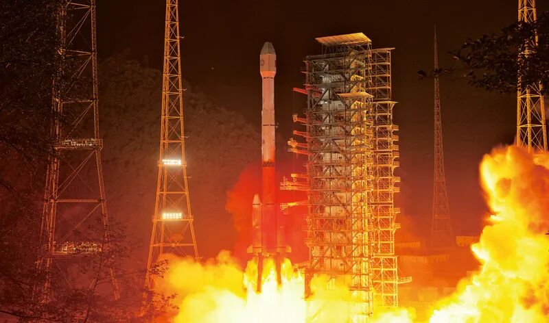 图为2021年6月3日零时17分,风云四号B星在西昌卫星发射中心成功发射。该卫星将与2016年12月11日成功发射的风云四号A星组成我国新一代静止轨道气象卫星观测系统,观测数据将广泛应用于数值天气预报、灾害天气预警、气候预测服务、生态环境监测、通信导航安全等领域。其所搭载的快速成像仪是世界首台昼夜高频次成像仪器,可提供2000公里×2000公里区域的1分钟间隔多谱段连续观测,对台风、暴雨和中尺度灾害性天气的监测更加灵活、精密。(中国气象局供图)