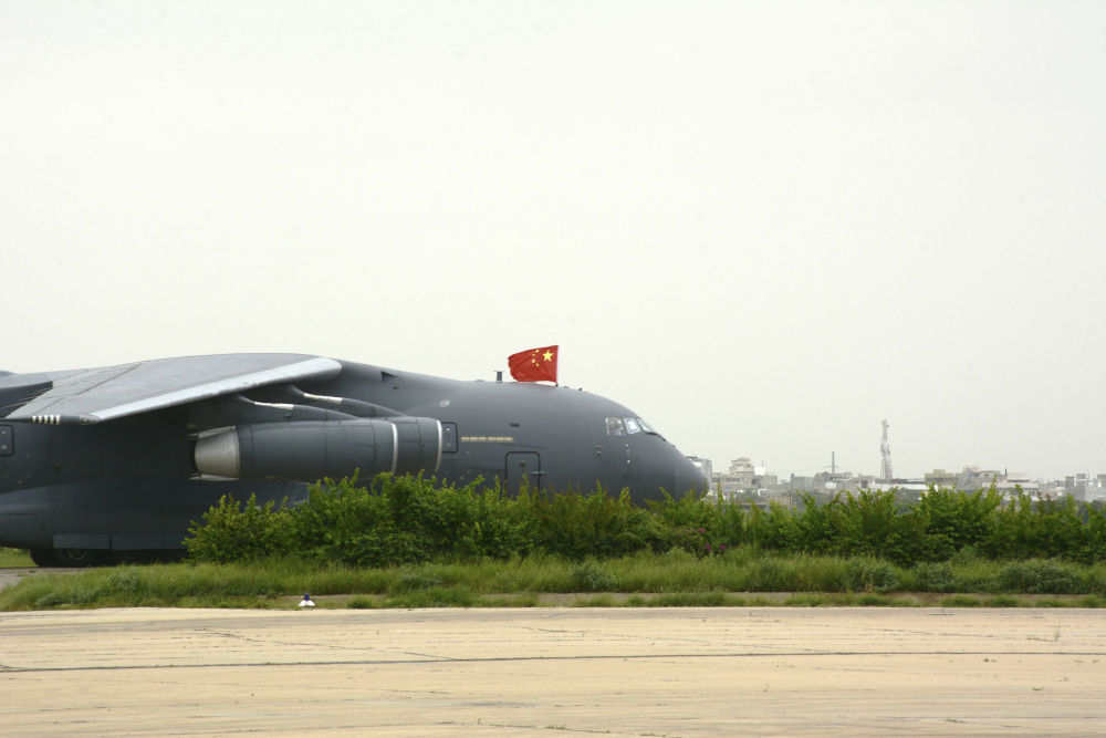 8月30日下午,这架载有中国援巴抗洪救灾人道主义物资的中国空军运-20运输机抵达机场。连续两天,共有4架次中国飞机将灾区最急需的首批帐篷运送至巴基斯坦,用于安置灾民。