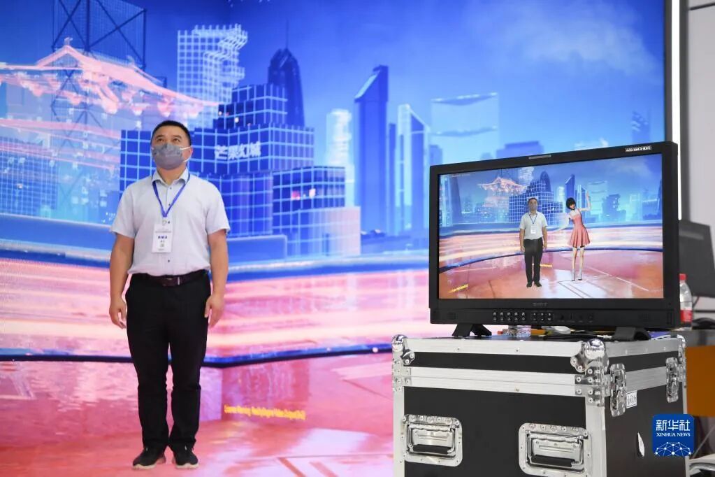 参观者在体验沉浸式XR虚拟录制系统。新华社记者 薛宇舸摄