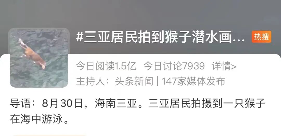 当时看到猴子在海里游泳也被惊讶到也是第一次见到