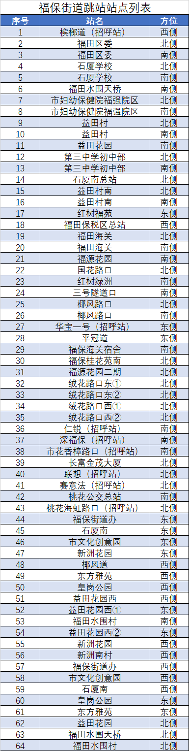 根据《深圳市福田区新型冠状病毒肺炎疫情防控指挥部通告(第299号)》《深圳市罗湖区新型冠状病毒肺炎疫情防控指挥部通告〔2022〕5号》《深圳市龙华区新型冠状病毒肺炎疫情防控指挥部通告〔2022〕5号》要求,桂园、南园、福保、龙华街道辖区的部分公交停靠站点暂停运营,途经公交线路实行跳站运行。