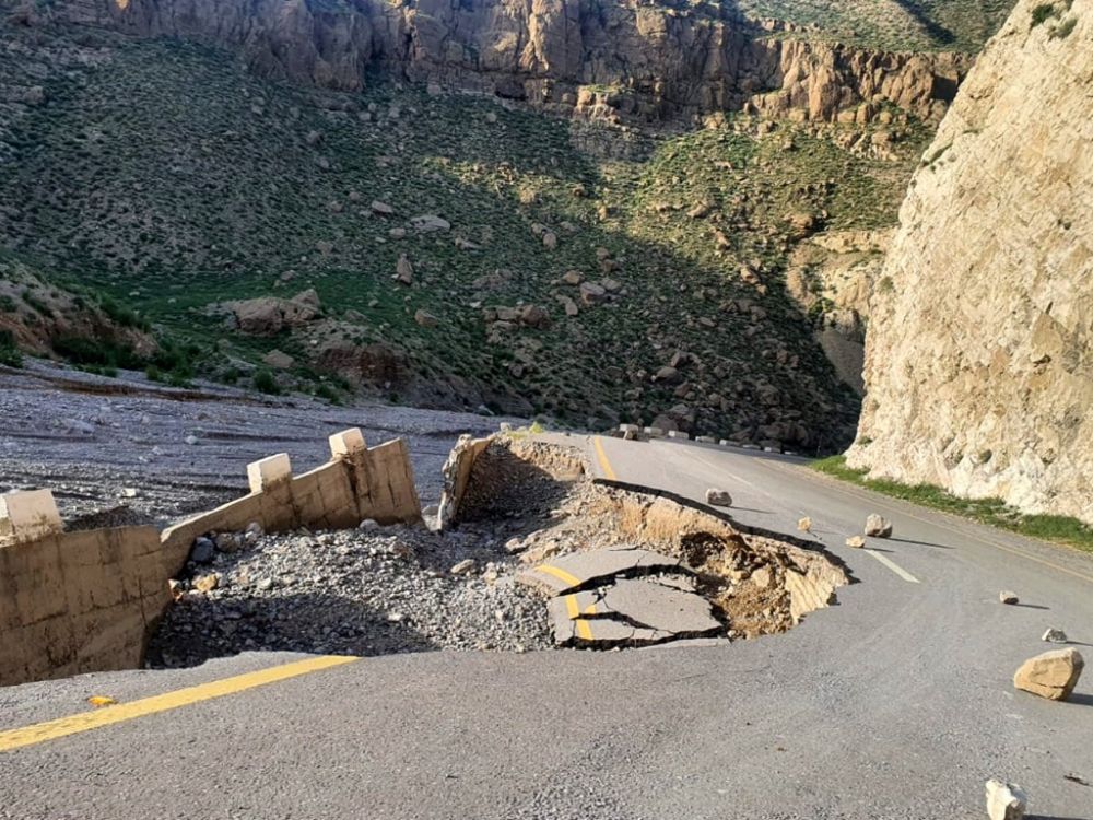这是8月28日在巴基斯坦俾路支省贾法拉巴德地区拍摄的被洪水损毁的公路。新华社发