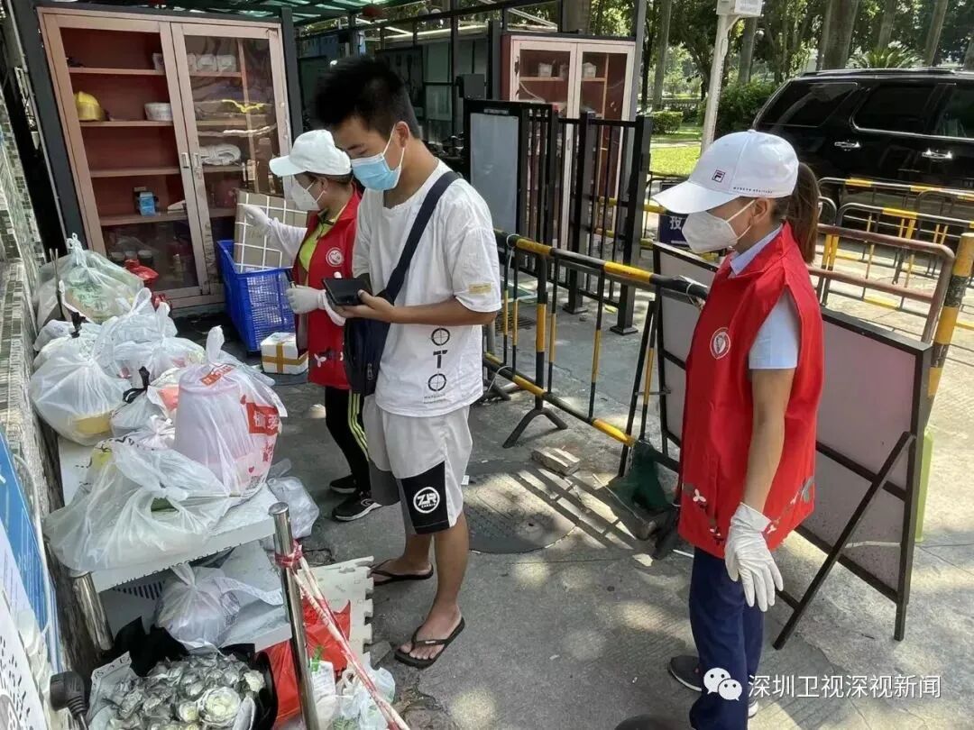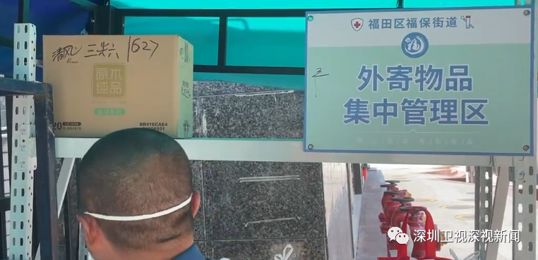 家住岗厦社区的记者看到,自家小区门口的外卖架上摆放着不少快递物品,外卖小哥也在有序配送中。同时,保安人员、志愿者都加入到物资管理和配送工作中。