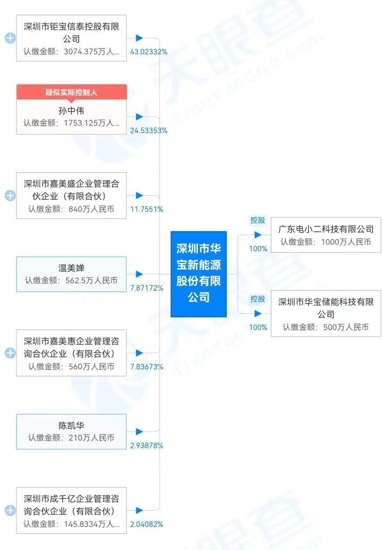 天眼查显示,深圳市华宝新能源股份有限公司成立于2011年7月,注册地为深圳市龙华区大浪街道。公司是一家提供锂电池便携储能电源解决方案的国家高新技术企业,主要产品有移动电源、便携储能电源。