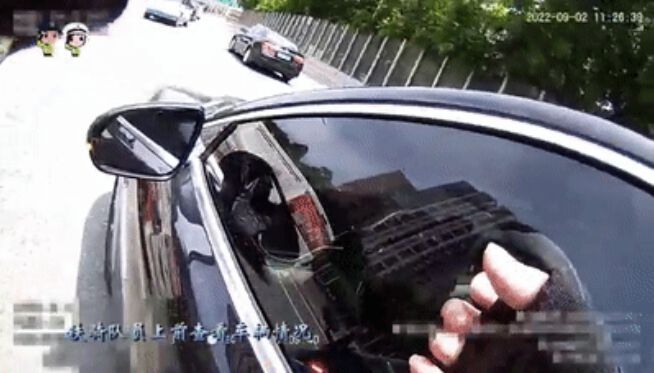 而此时,由于车辆车门全被反锁,民警无法从外打开,情况十分紧急!