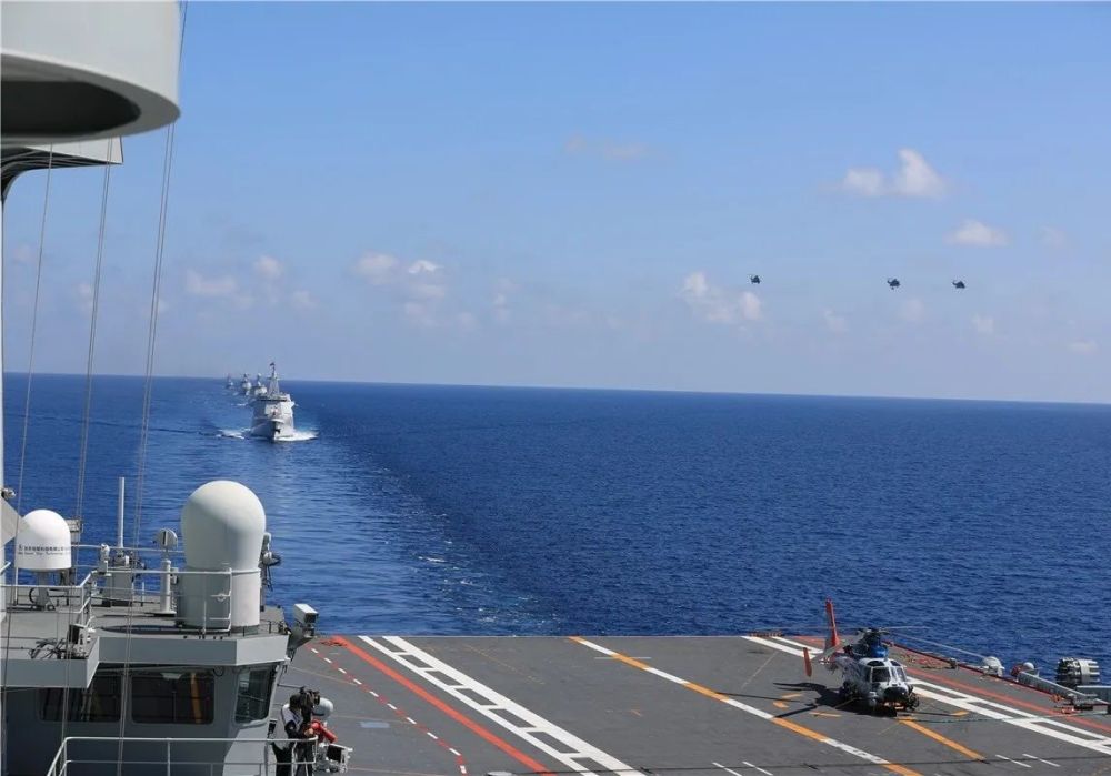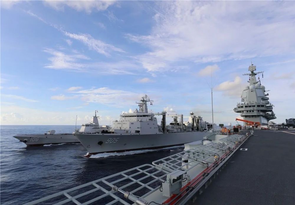 (原标题《航母、万吨大驱、“超级奶妈”三舰同框!山东舰航母编队训练画面来了》)