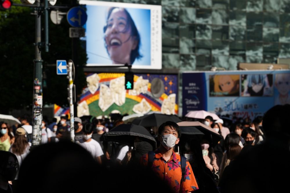 7月29日,戴口罩的行人走在日本东京涩谷街头。新华社记者 张笑宇 摄