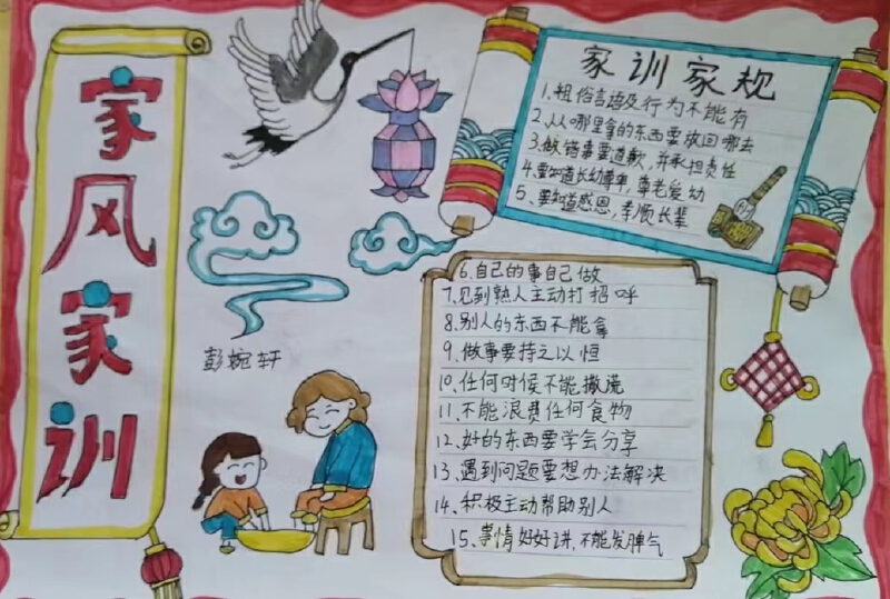 活动中,社工带领社区青少年一起阅读“好家风·好家训·好家教”相关故事,并围绕中国传统文化的家规、家训、家教、家风中涉及到的学习习惯、生活习惯等方面内容进行了解读。随后,社工又指引青少年们,通过线上答题来巩固和加深对中华民族传统美德和优秀的家风文化的理解。社区青少年们通过自己的理解,在家长们的帮助下制作成“好家风·好家训·好家教”系列手抄报。利用这一特别的形式,倡导从自己做起、从家庭做起,弘扬好家风,传承好家教,建设“最美家庭”。