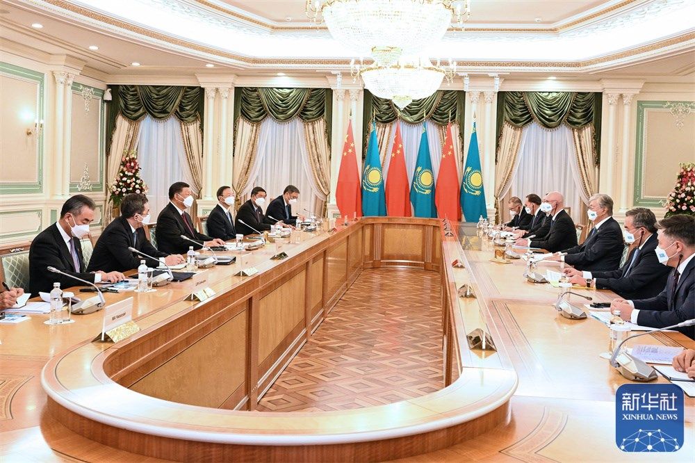 习近平强调,中方支持中亚国家维护政治安全和社会稳定,支持中亚国家加强一体化合作,愿同哈方保持密切沟通,妥善应对各类新问题新挑战,反对外部势力干涉中亚国家事务,共同维护本地区长治久安。双方要加强在上海合作组织、亚信、“中国+中亚五国”等多边机制框架内合作,共同支持办好上海合作组织撒马尔罕峰会,为本组织下阶段发展注入新动力。双方要加强国际协作,践行真正的多边主义,为构建更加公正合理的全球治理体系作出“中哈贡献”。