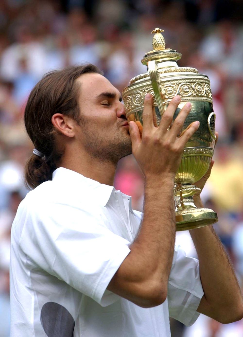 2003年7月7日,在温布尔登网球公开赛男单决赛中,费德勒以3:0战胜澳大利亚选手菲利普西斯,第一次捧得温网冠军奖杯。新华社记者王定昶摄