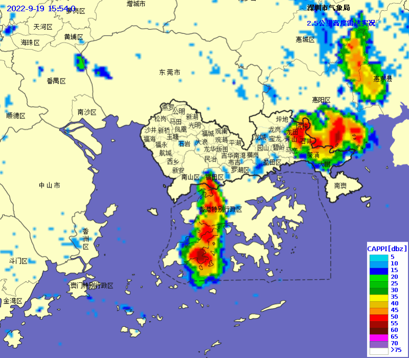 △2022年9月19日15时54分-17时雷达回波实况图