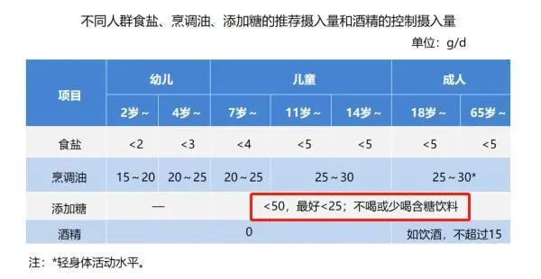 根据《中国居民膳食指南(2022)》,《指南(2022)》建议,无论是幼儿还是成人,每日添加糖的摄入量不超过50g,最好控制在25g以下。