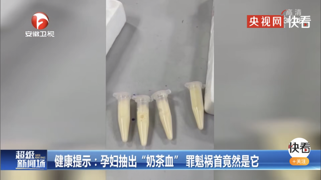 广西南宁一名孕31周的37岁孕妇因为几乎每天都要喝一杯奶茶,血检发现血液也变得和奶茶一个颜色了。化验结果显示,她的甘油三酯严重超标,且出现了早产症状。