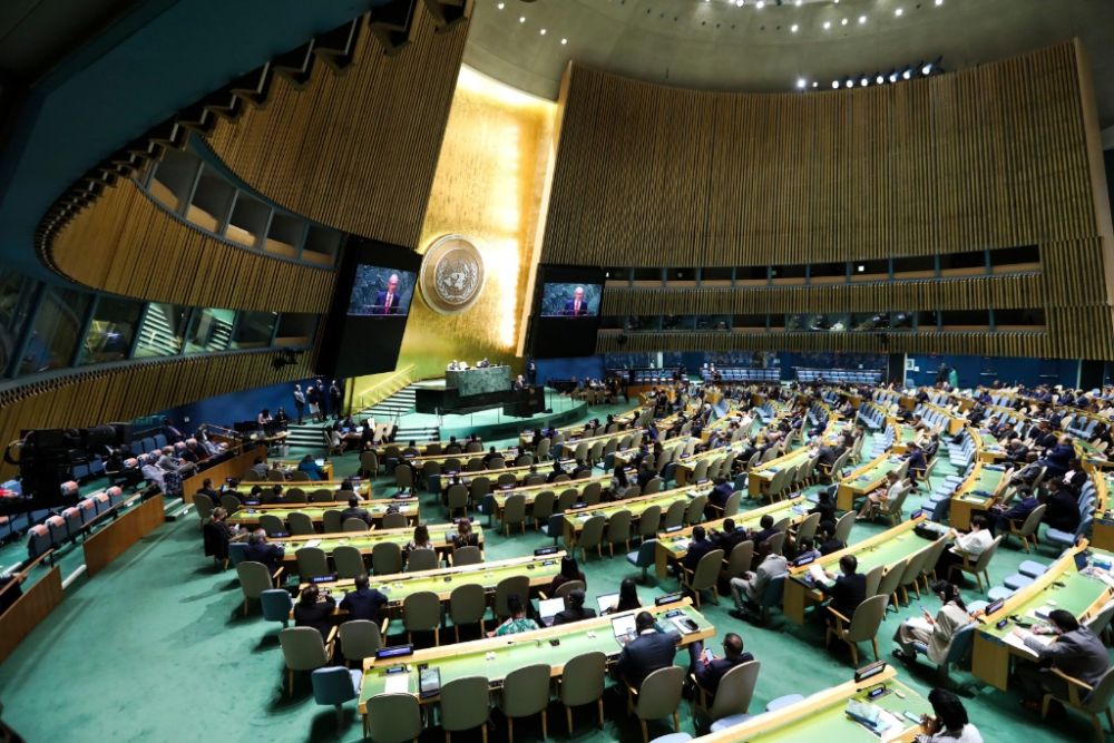 9月13日,第77届联合国大会第一次全会在位于纽约的联合国总部举行。新华社记者王迎摄