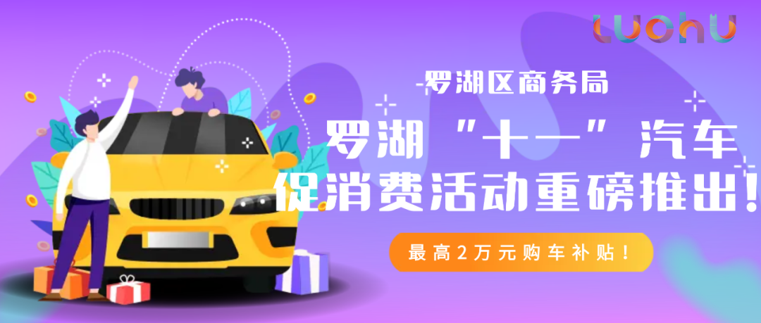 近日,罗湖区商务局推出“十一”汽车促消费活动。活动期间,个人消费者在罗湖区指定汽车经销企业处购车可享最高2万元购车补贴,同时,可额外享600元罗湖区汽车消费券专享特权银行卡增值服务。