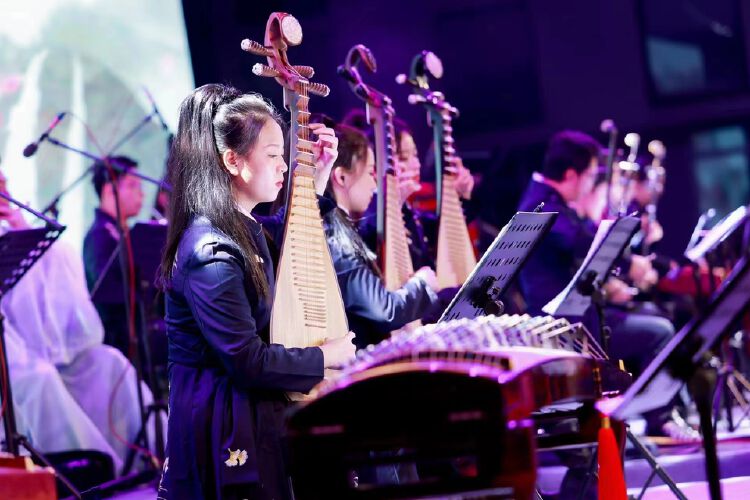 演出现场,龙华区远山教师民乐团与HUI品牌一同让中国民乐与中国服饰为世界传递了中国声音,古典音乐与现代时尚碰撞,国潮服装与民族音乐共鸣,为现场观众带来了一场视听盛宴。