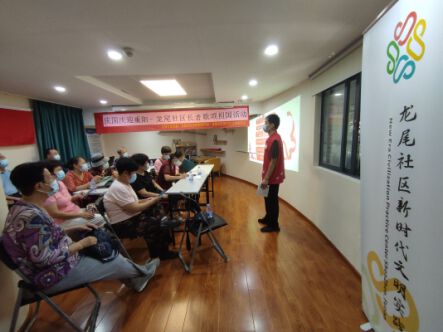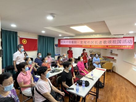 日前,在深圳市福田区梅林街道办事处以及龙尾社区党委的指导下,龙尾社区党群服务中心在龙尾社区新时代文明实践站开展了“庆国庆·迎重阳”龙尾社区长者歌颂祖国活动。
