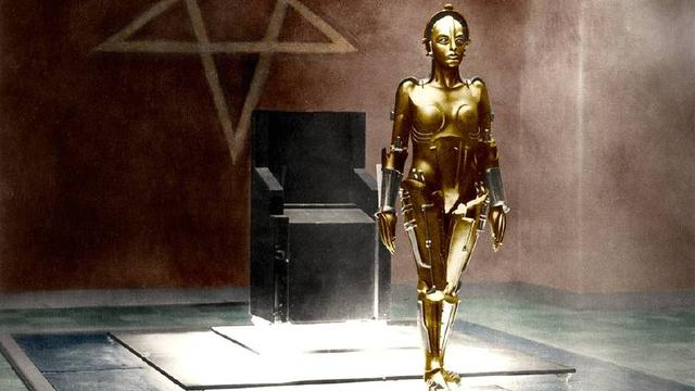 1927年,默片《大都会》问世,影片中金色盔甲外形的女机器人“玛丽亚”甫一露面,惊艳世界。