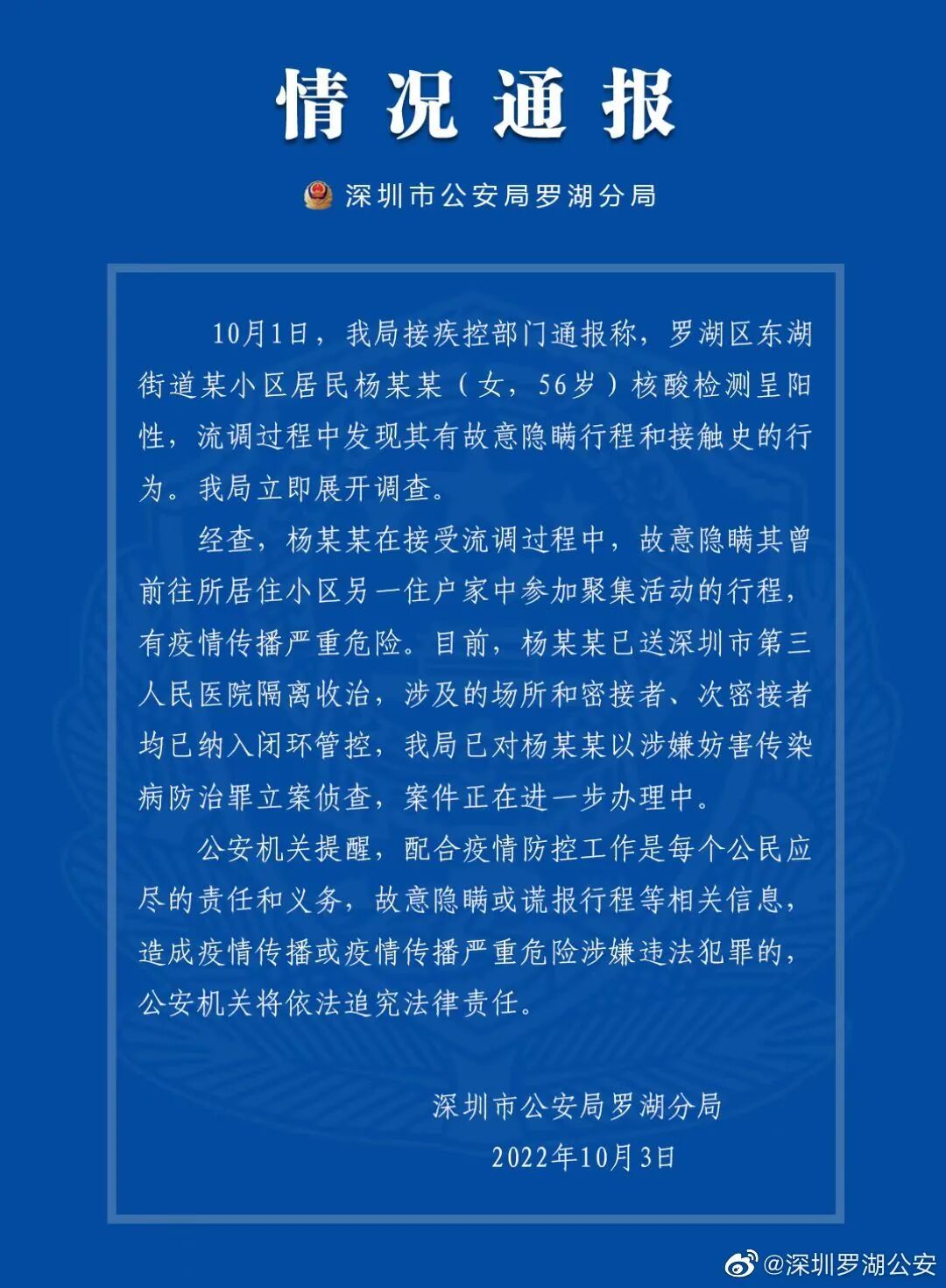 女子故意隐瞒行程和接触史 深圳罗湖公安发布情况通报