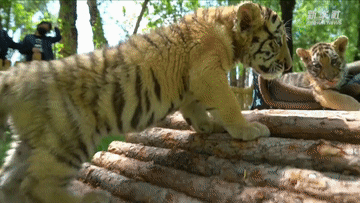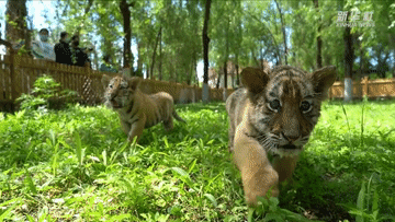 我国人工繁育东北虎已有30多年的历史,画面里的小东北虎正在位于黑龙江省哈尔滨市的东北虎林园内玩耍,这里是中国横道河子猫科动物饲养繁育中心下属的3个虎园之一,共有400余只东北虎生活在这里。
