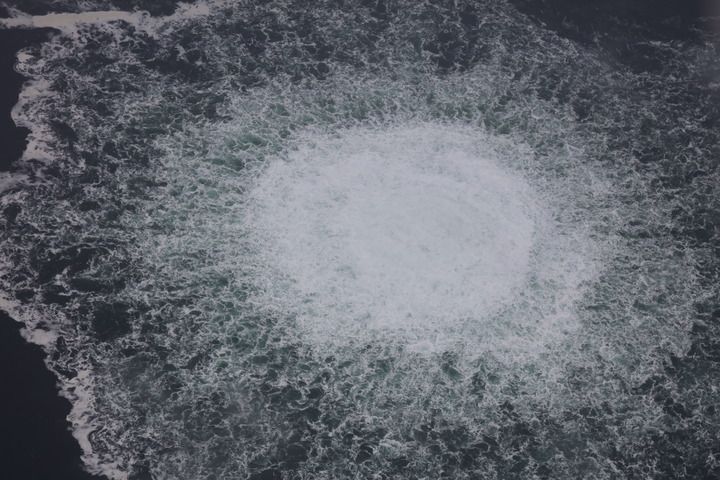 这张瑞典海岸警卫队9月28日发布的航拍照片显示的是,“北溪-1”天然气管道仍在泄漏大量气体。新华社发(瑞典海岸警卫队供图)