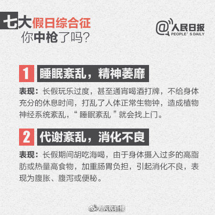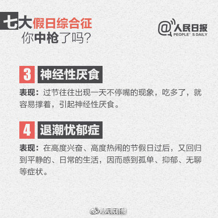 食欲不振、没有精神、不想上班、生物钟紊乱,你中了几枪?面对“节后综合征”,试试:①吃些粗粮,清理肠胃;②补充睡眠;③做些舒缓运动;④放松阅读;⑤写写待办事项…告别节后综合征的8个方法请查收!