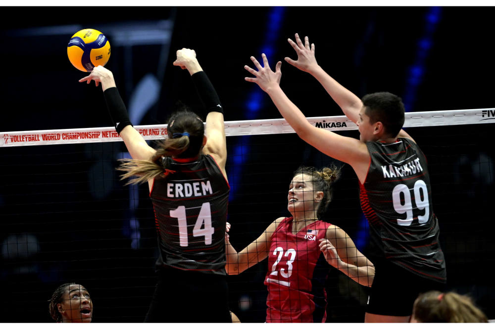 东京奥运会冠军美国队以3:1战胜土耳其队,四局比分为25:22、21:25、25:20和25:22。两队各有4人得分上双,土耳其选手居内什和卡拉库尔特得到全场并列最高的16分。美国队与土耳其队目前战绩均为6胜2负,分居F组第二和第三名。
