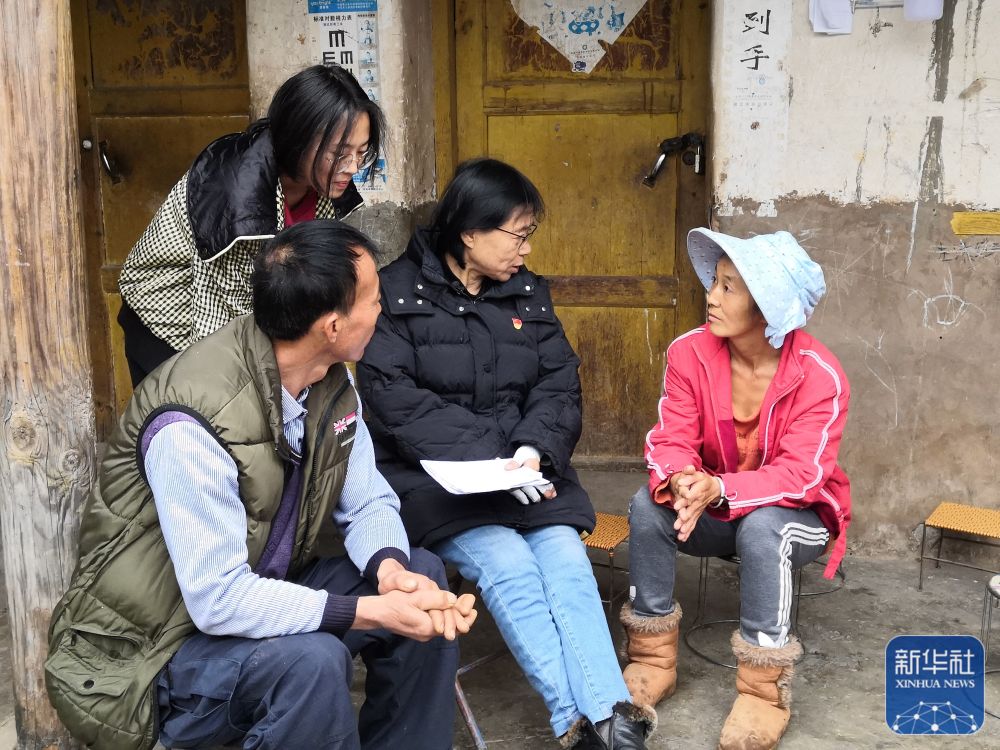 云南丽江华坪女子高级中学党支部书记、校长张桂梅(右二)在家访时与学生家长交谈(2021年2月9日摄)。新华社发(王秀丽 摄)