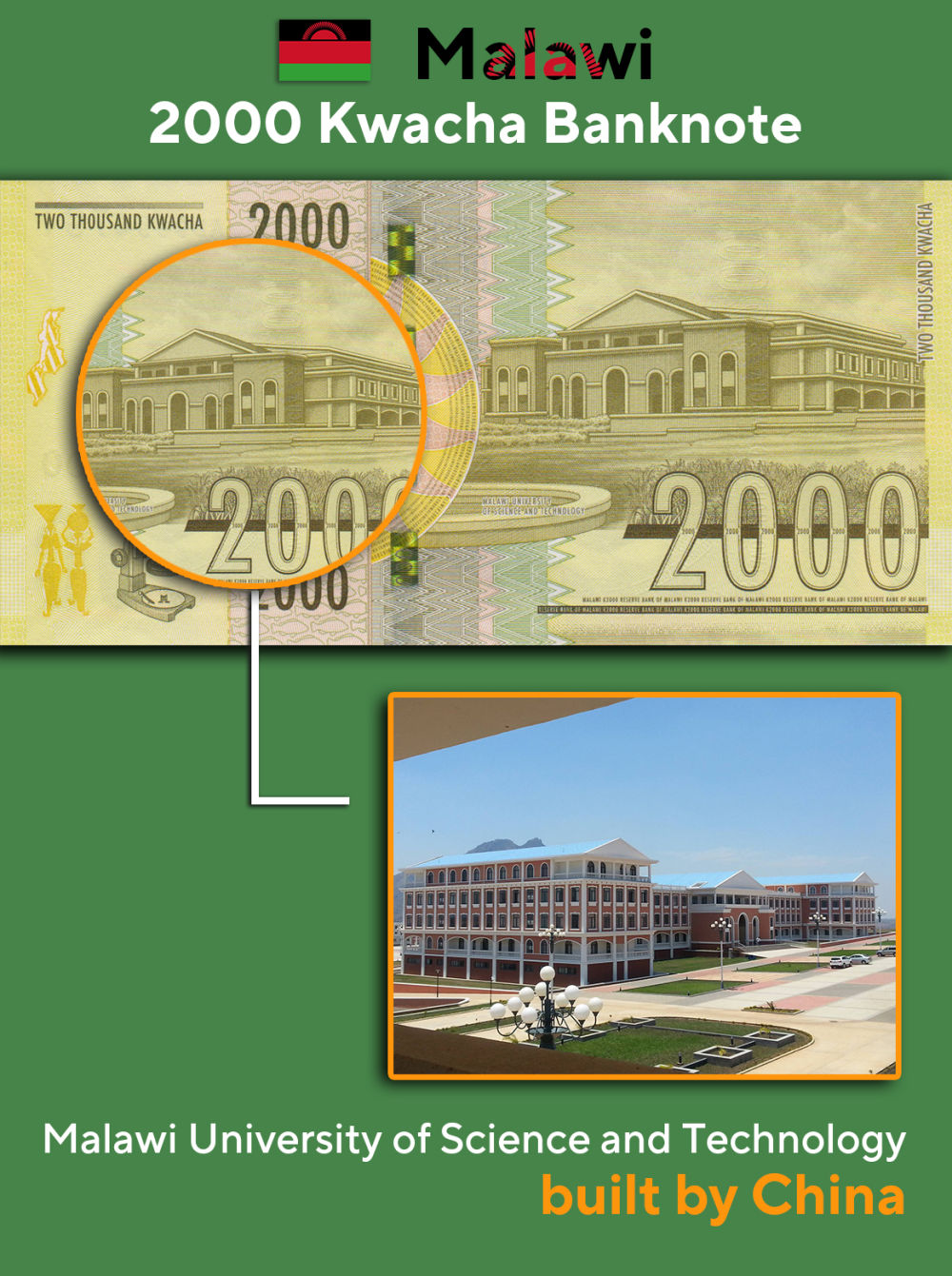 马拉维面额2000克瓦查纸币——马拉维科技大学。