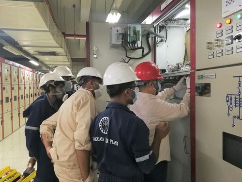 中斯检修维护人员在斯里兰卡普特拉姆燃煤电站工作。新华社发
